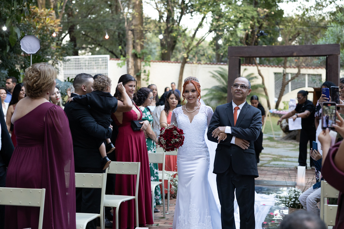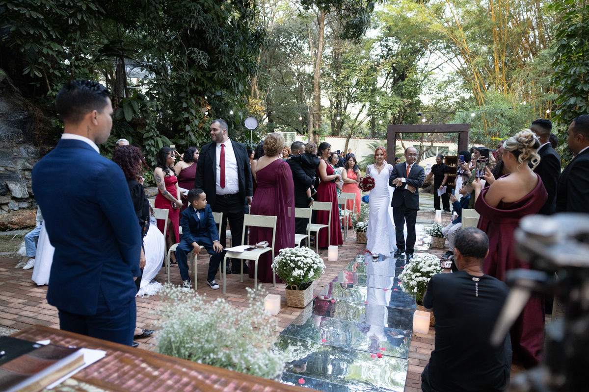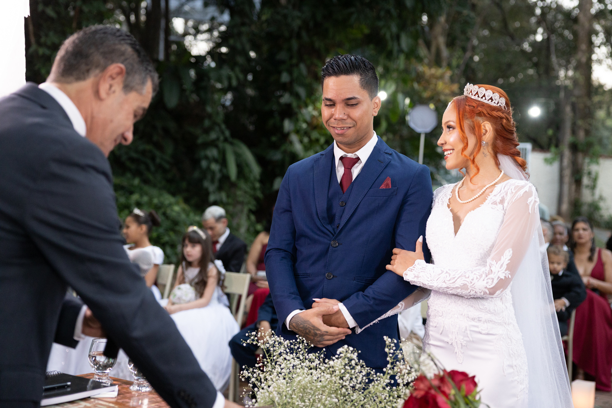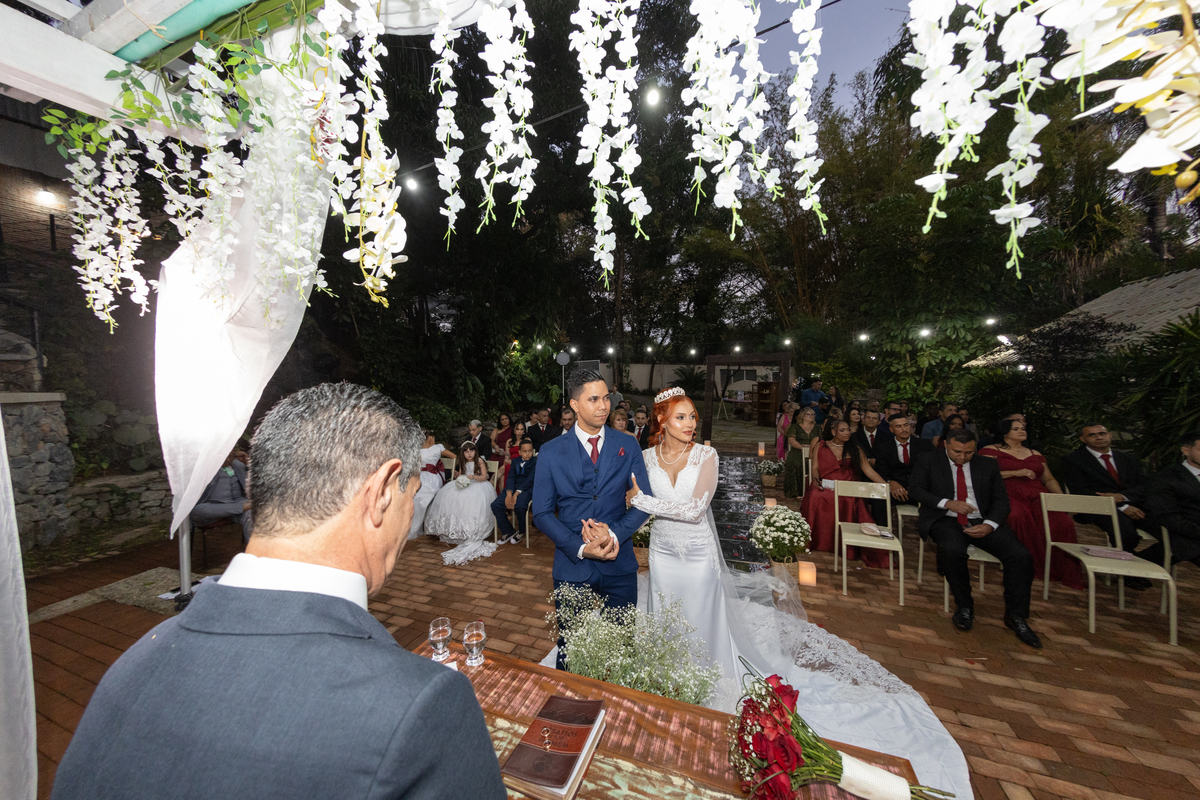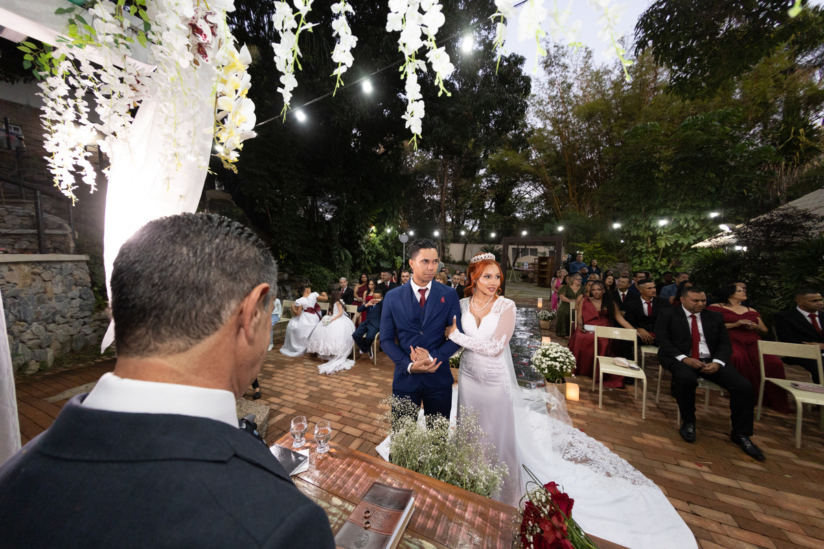 A troca de olhares, os sorrisos espontâneos e as lágrimas de felicidade marcaram a cerimônia, tornando tudo ainda mais verdadeiro e emocionante. O Espaço Bela Casa, com sua beleza e elegância, foi o cenário ideal para registrar cada instante desse dia tão especial.