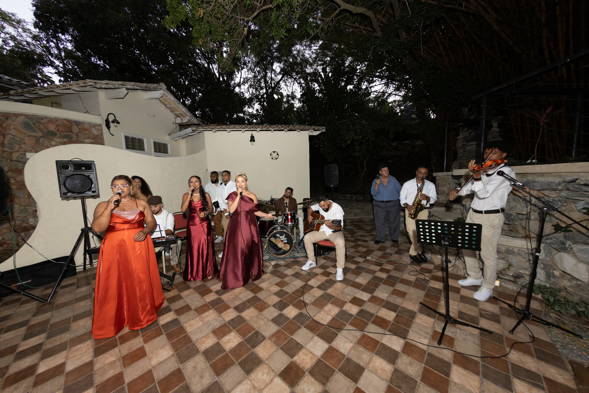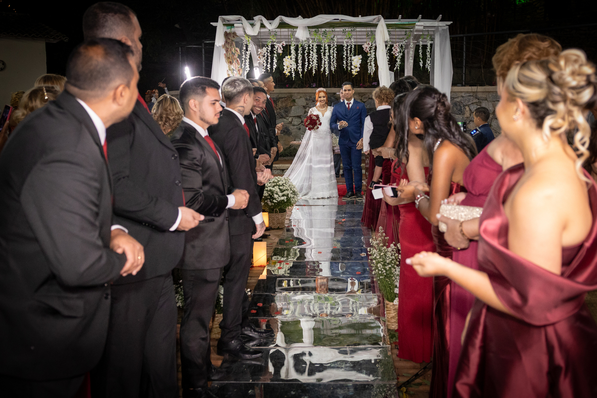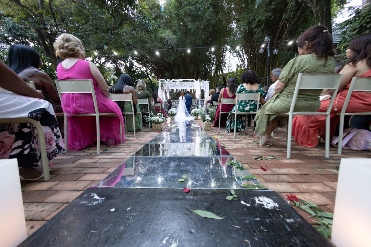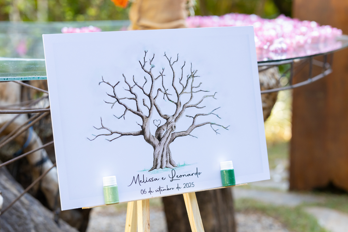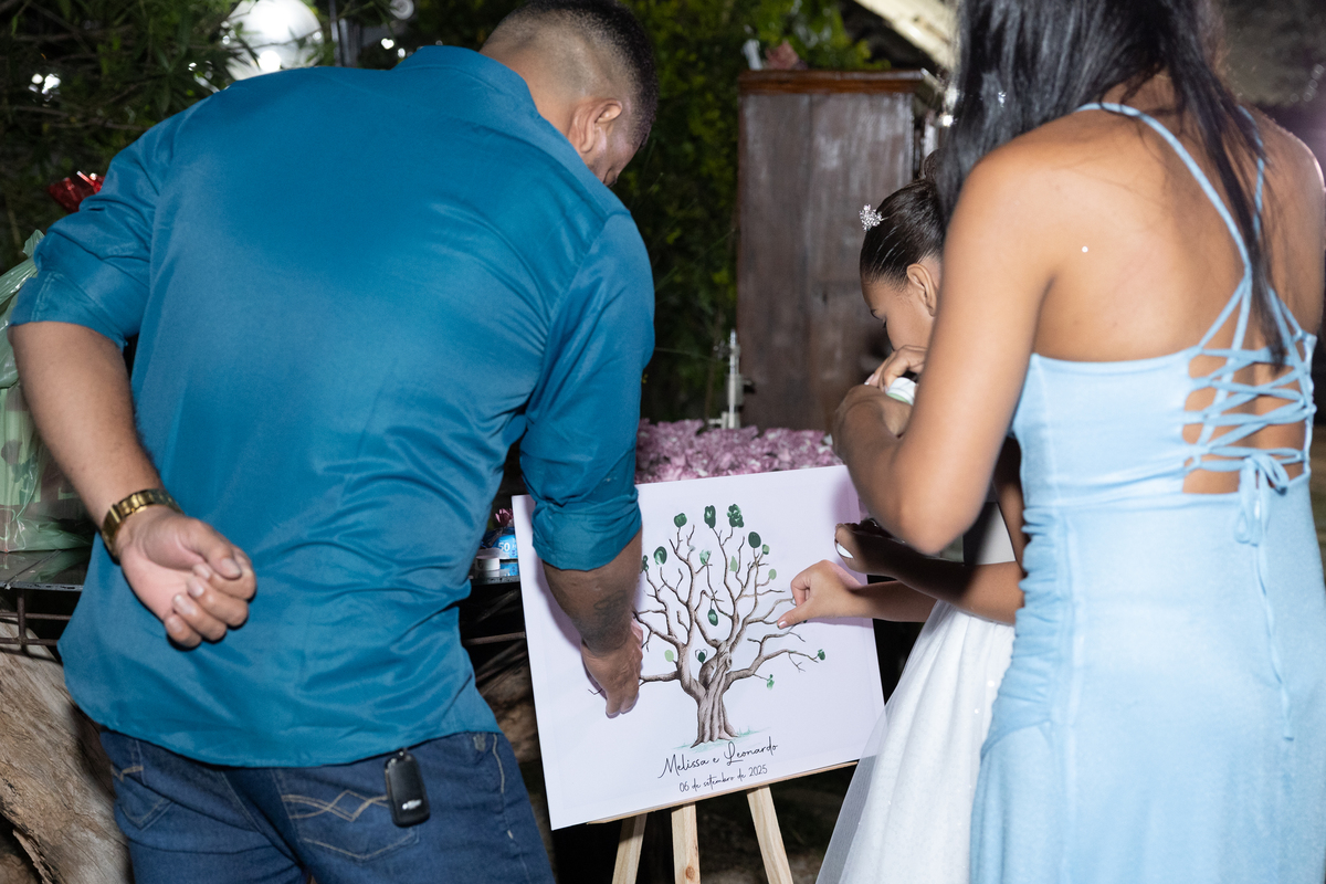 Desde os preparativos já era possível sentir a alegria e a expectativa no ar. Cada detalhe foi pensado com muito carinho para celebrar o amor do casal ao lado de familiares e amigos. Quando o sol começou a se pôr, a cerimônia ganhou um cenário ainda mais especial: a luz suave do fim de tarde trouxe uma atmosfera romântica e acolhedora, perfeita para o “sim” de Melissa e Leonardo.