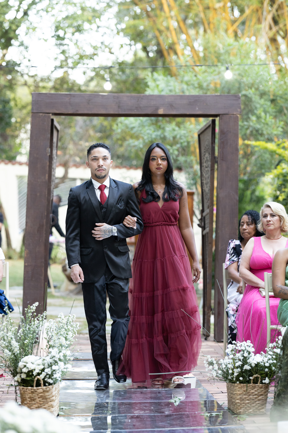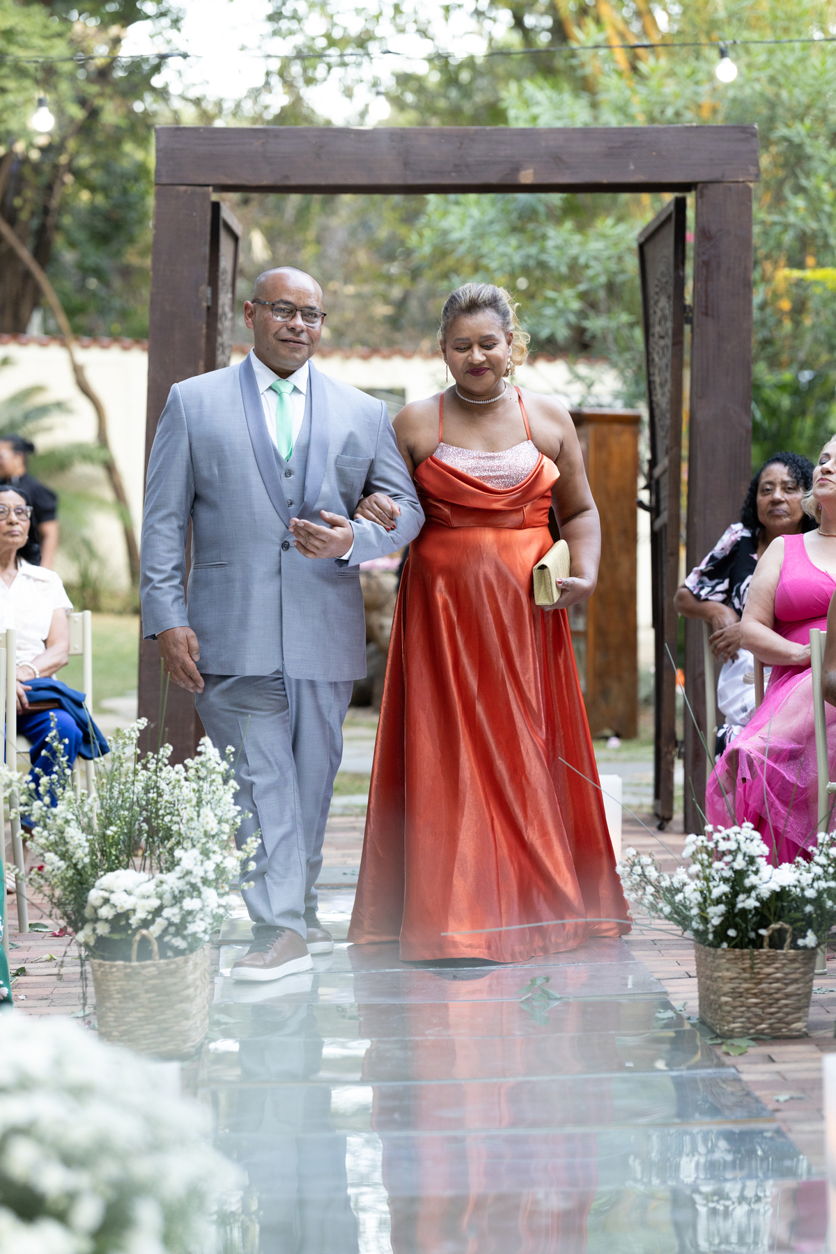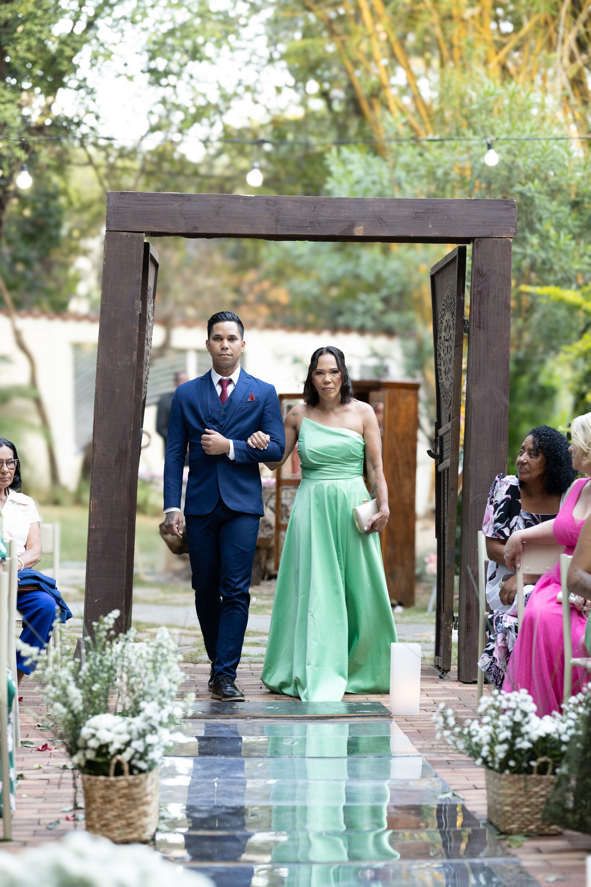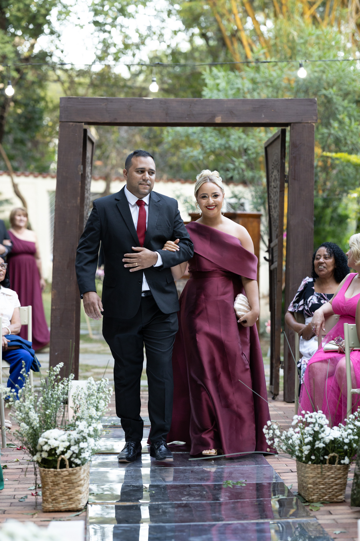Desde os preparativos já era possível sentir a alegria e a expectativa no ar. Cada detalhe foi pensado com muito carinho para celebrar o amor do casal ao lado de familiares e amigos. Quando o sol começou a se pôr, a cerimônia ganhou um cenário ainda mais especial: a luz suave do fim de tarde trouxe uma atmosfera romântica e acolhedora, perfeita para o “sim” de Melissa e Leonardo.