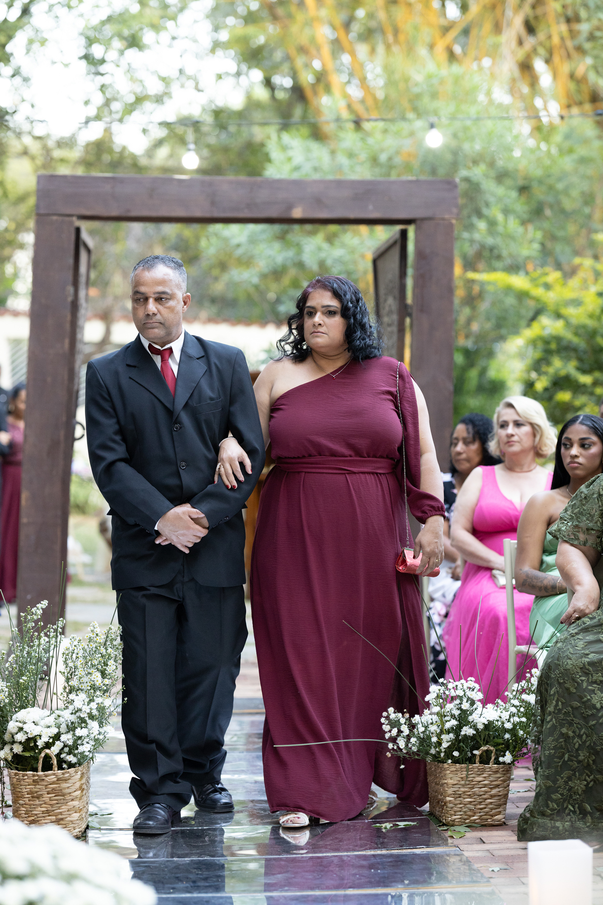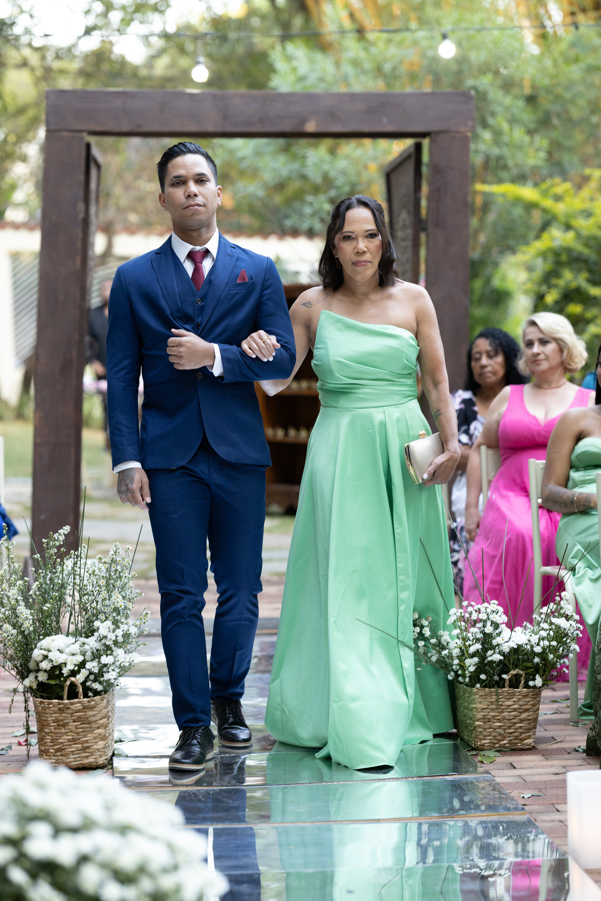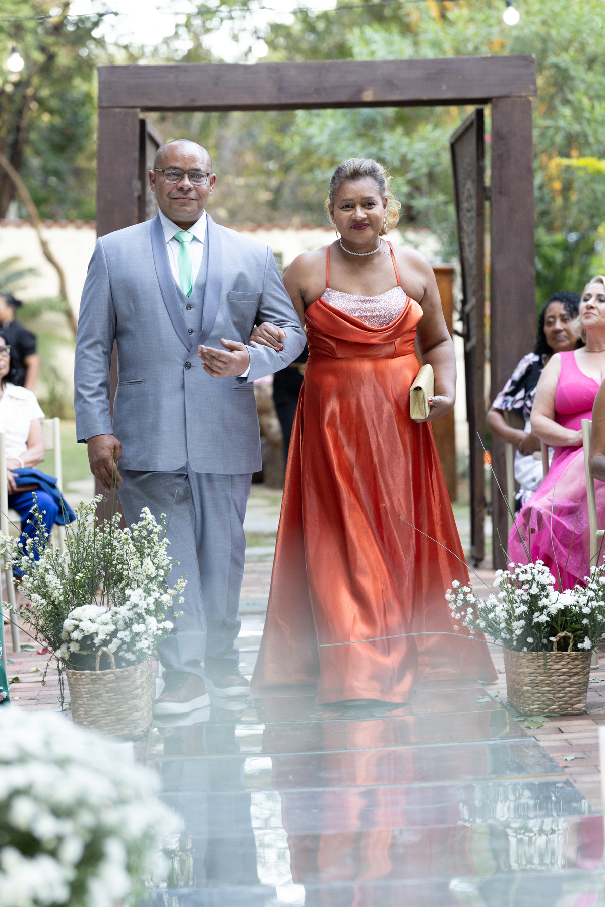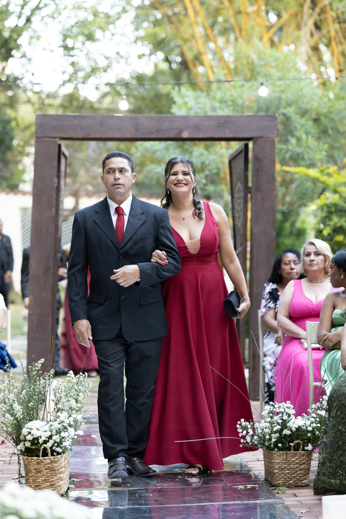 Desde os preparativos já era possível sentir a alegria e a expectativa no ar. Cada detalhe foi pensado com muito carinho para celebrar o amor do casal ao lado de familiares e amigos. Quando o sol começou a se pôr, a cerimônia ganhou um cenário ainda mais especial: a luz suave do fim de tarde trouxe uma atmosfera romântica e acolhedora, perfeita para o “sim” de Melissa e Leonardo.